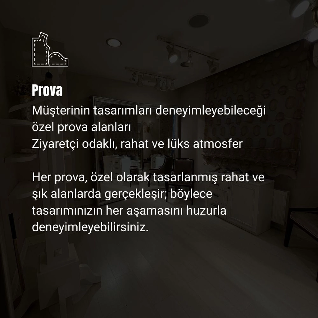 - Genellikle tasarımın karmaşıklığına ve detaylara göre 2 prova planlanır. İlk provada kalıp ve ölçü kontrolü yapılır, sonraki provada kumaş, dantel, işleme ve son dokunuşlar şekillenir. Her adımda sizin onayınız alınır; amaç, elbisenizin hem kusursuz oturması hem de sizi en zarif hâlinizle yansıtmasıdır.