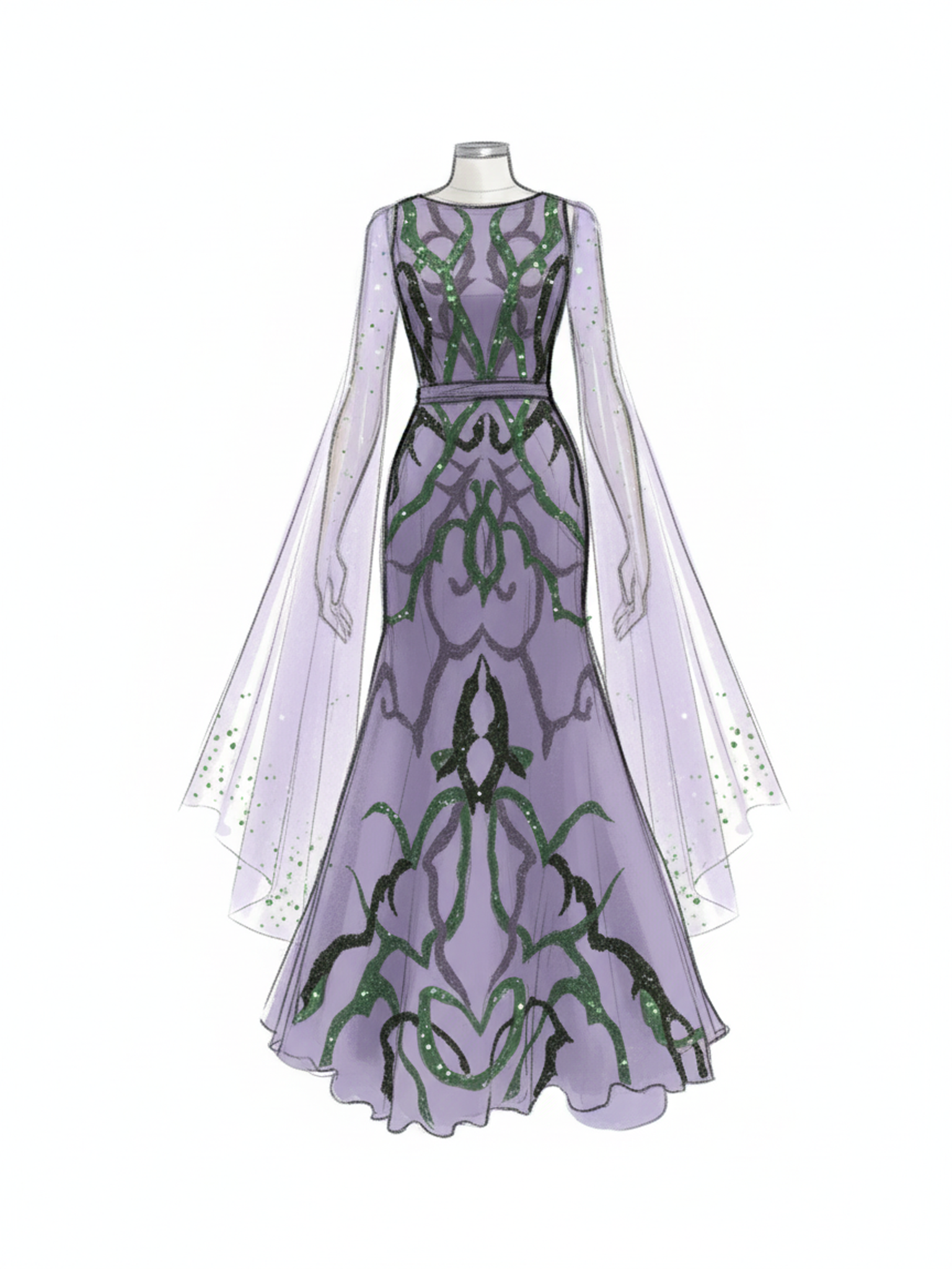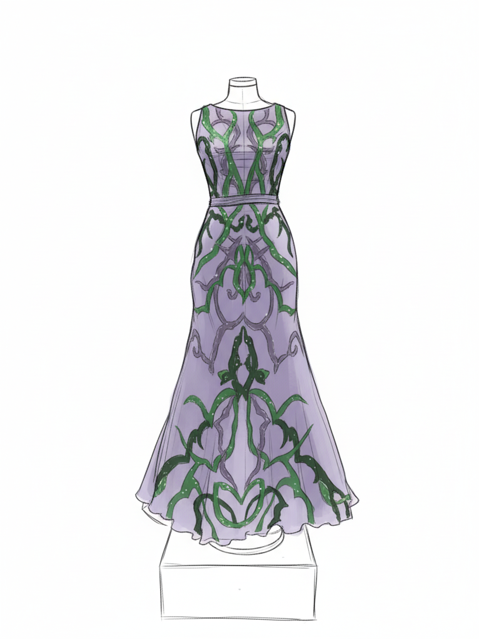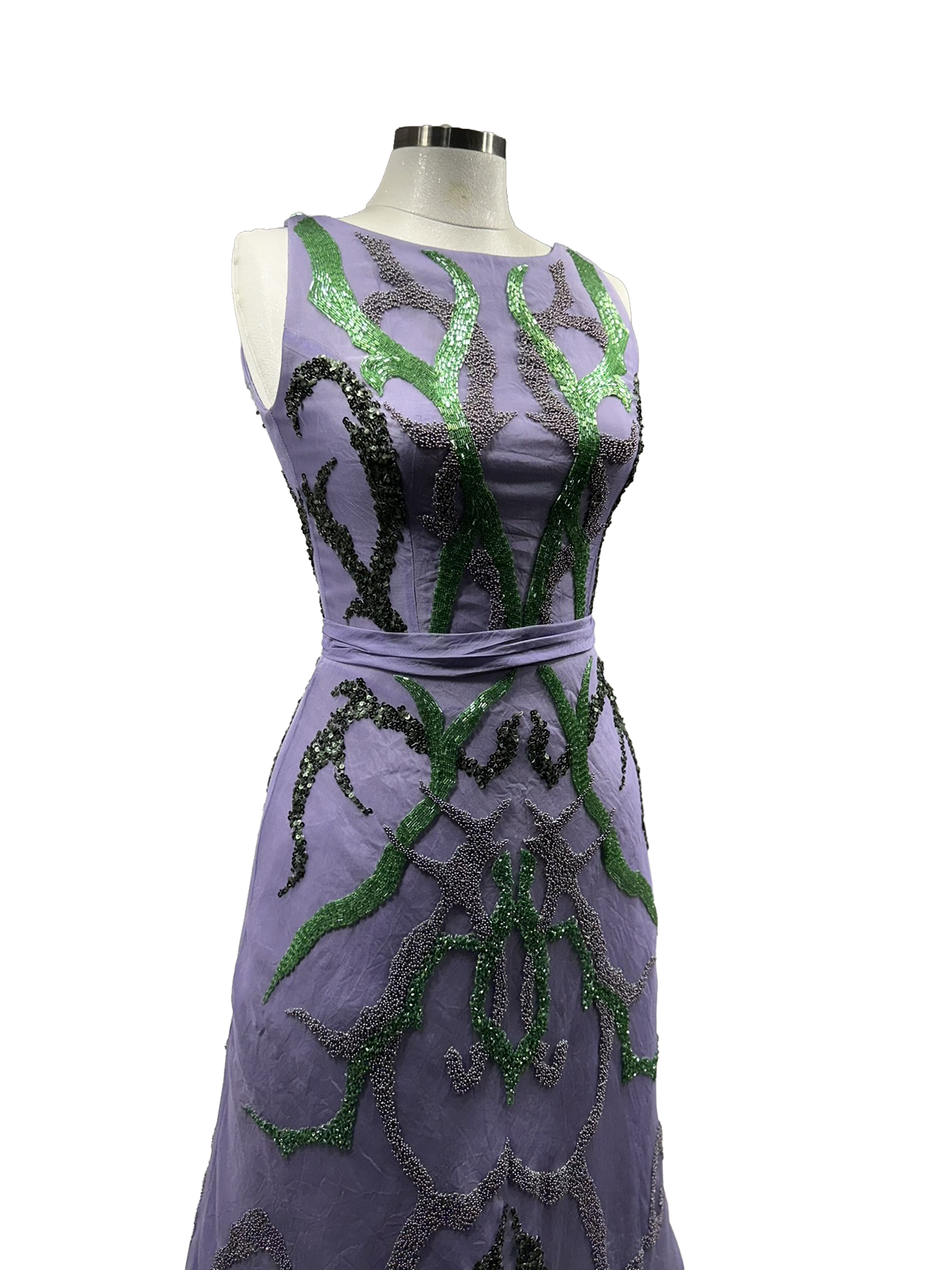 Canlı renk geçişleri ve zarif işlemeler, bedeni saran formda modern ve etkileyici bir siluet yaratır.