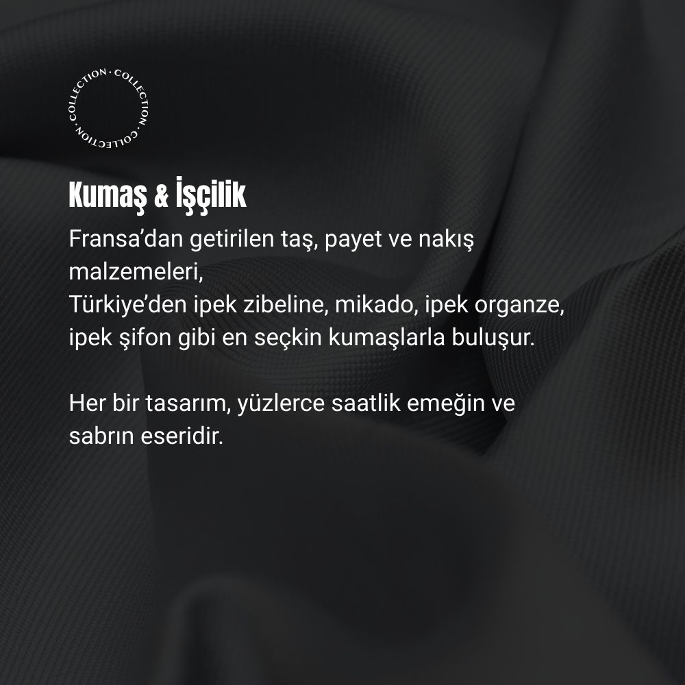 - Bukra Couture’de her elbise; seçilen kumaş, işleme yoğunluğu, modelin detayı ve kişisel ölçülere göre özel olarak hazırlanır. Bu nedenle her tasarımın fiyatı, tamamen sizin tercihlerinize göre şekillenir. Beğendiğiniz modeli bizimle paylaştığınızda, size en uygun fiyat aralığını ve üretim sürecini detaylı olarak yalnızca mağaza yetkilimiz aracılığıyla aktarabiliriz.