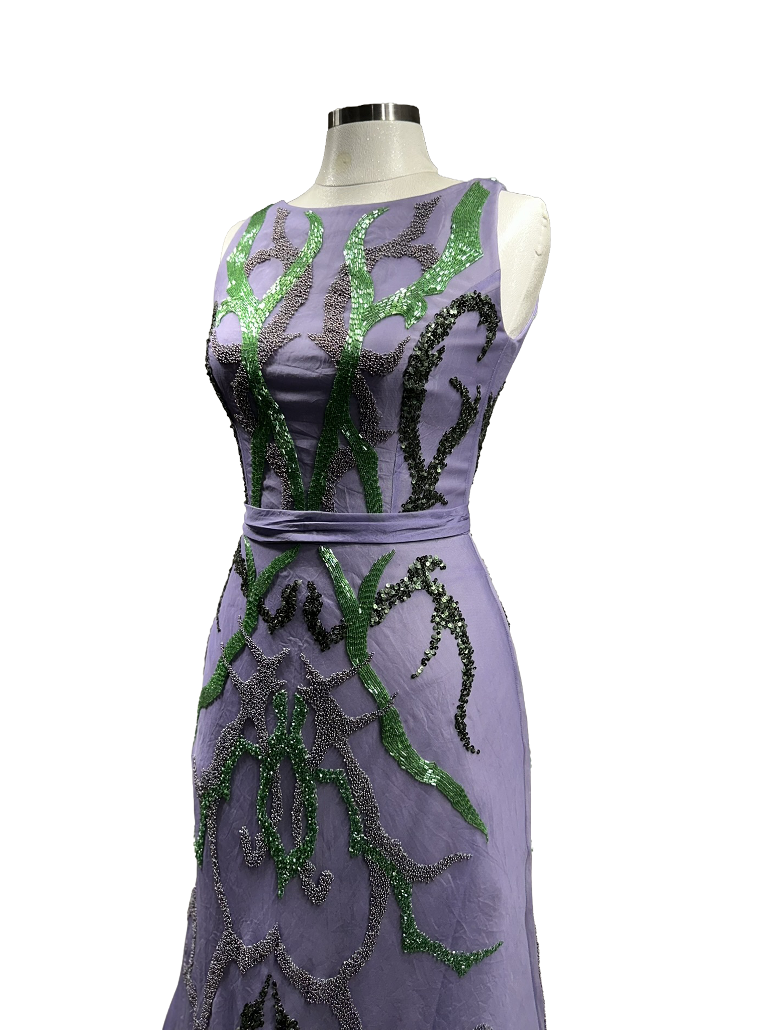 Canlı renk geçişleri ve zarif işlemeler, bedeni saran formda modern ve etkileyici bir siluet yaratır.